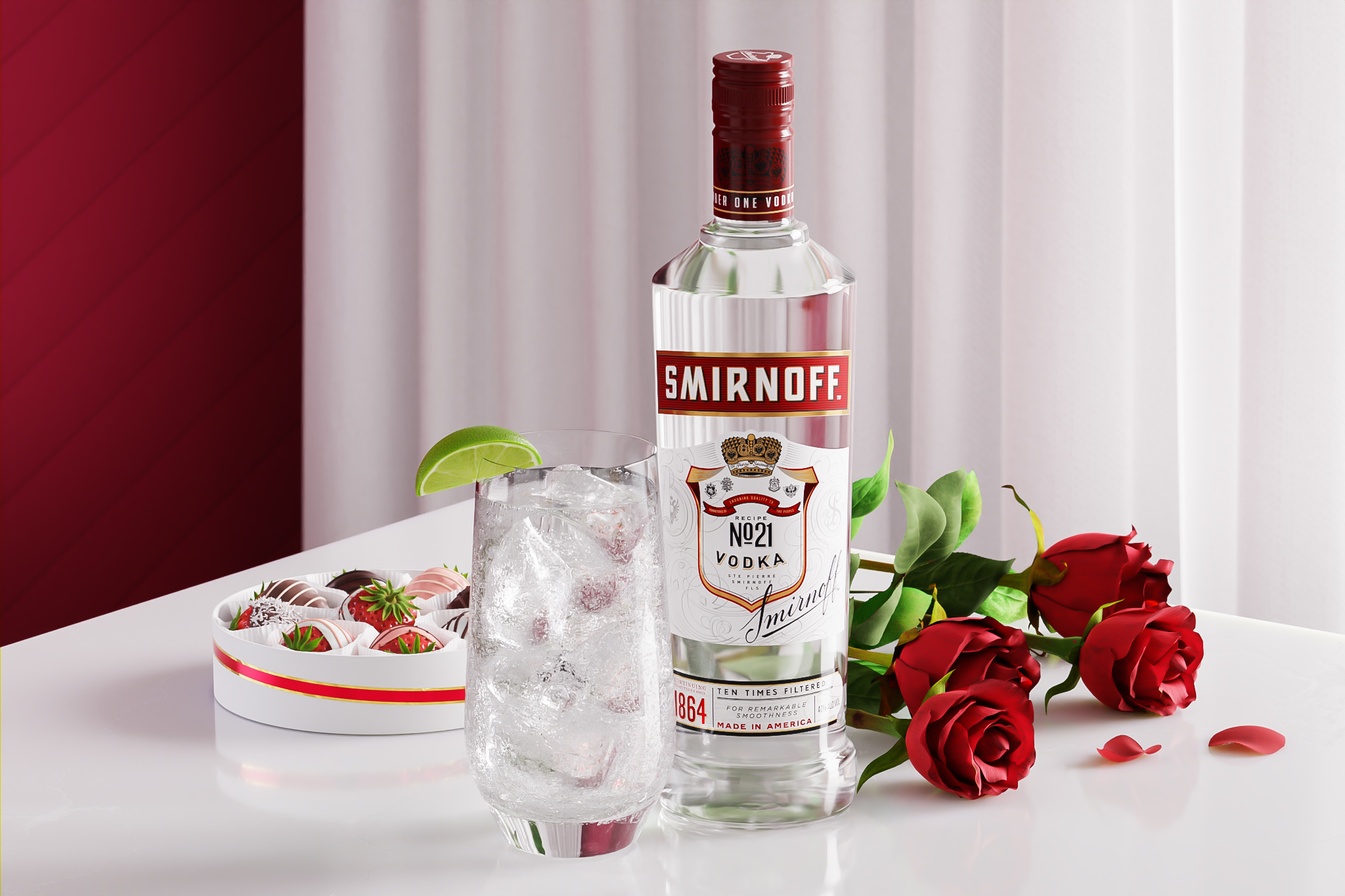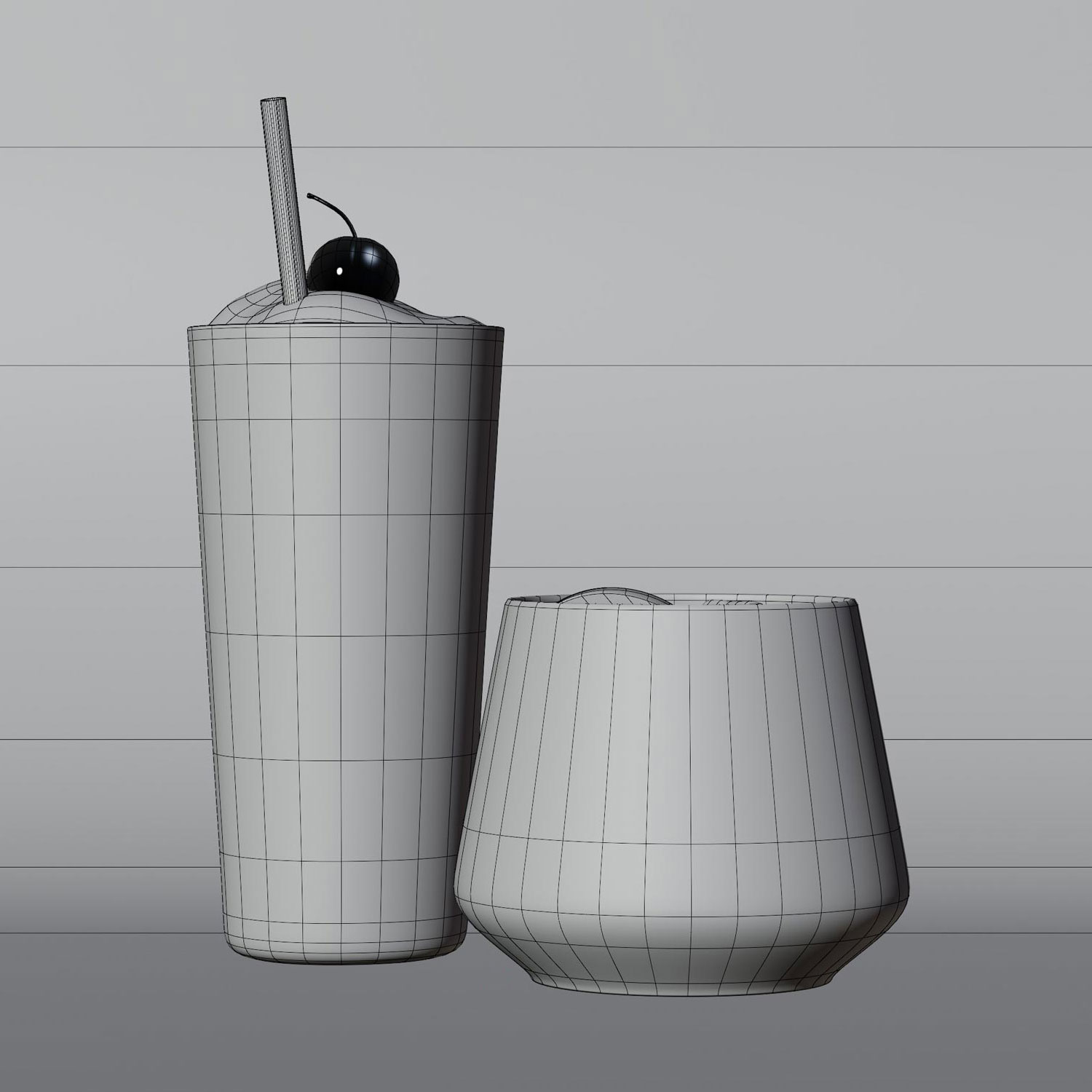 These scenes focus on photorealistic liquid rendering, glass materials, and lifestyle compositions designed to showcase spirits and cocktails in promotional environments.