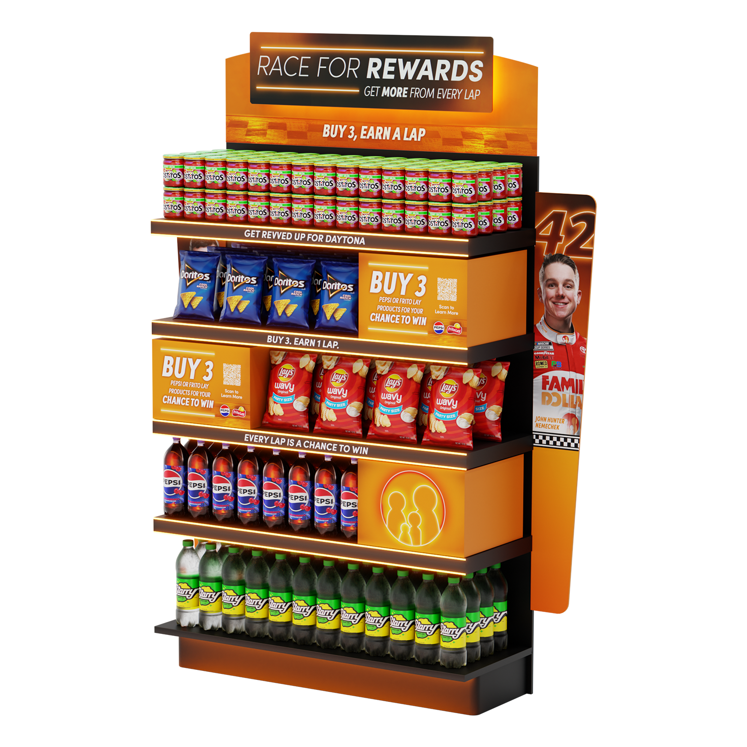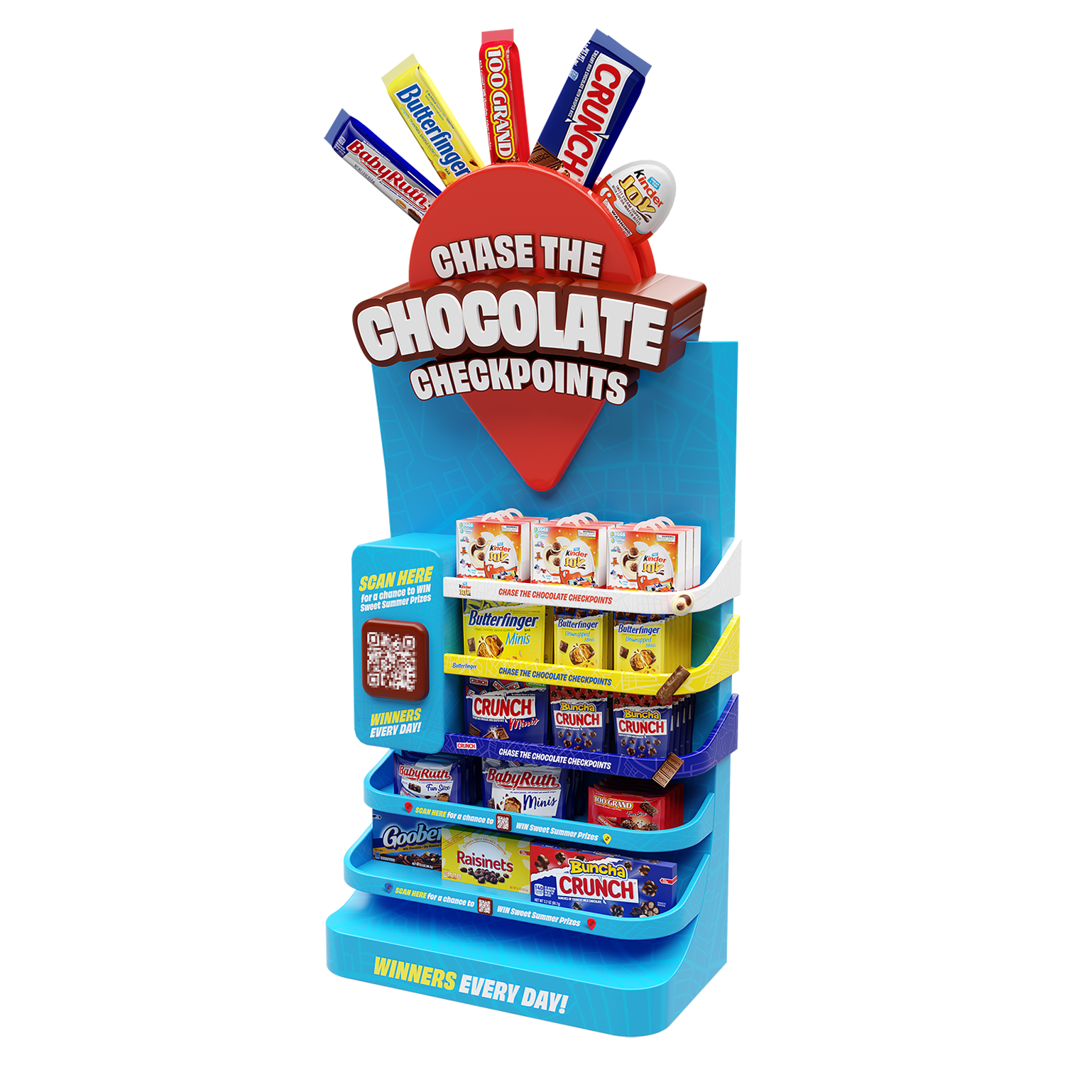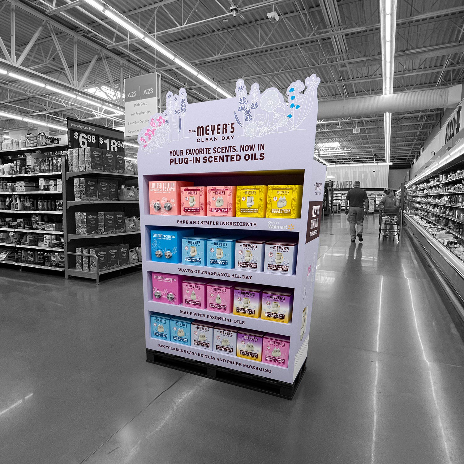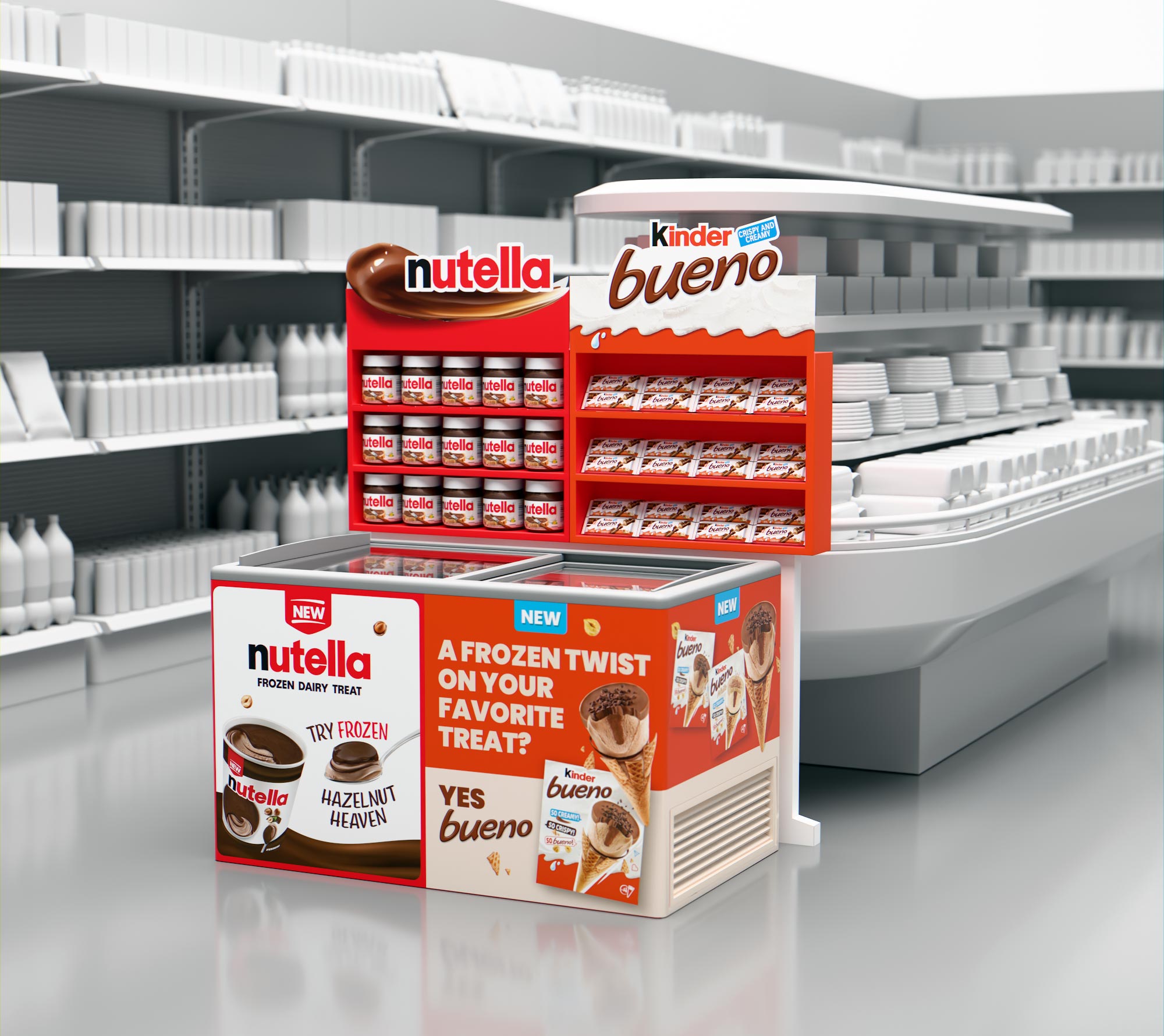 Retail display visualizations created to present point-of-sale merchandising concepts in realistic store environments. The work combines 3D modeling, lighting, and compositing to showcase displays within retail spaces used for marketing and in-store planning.